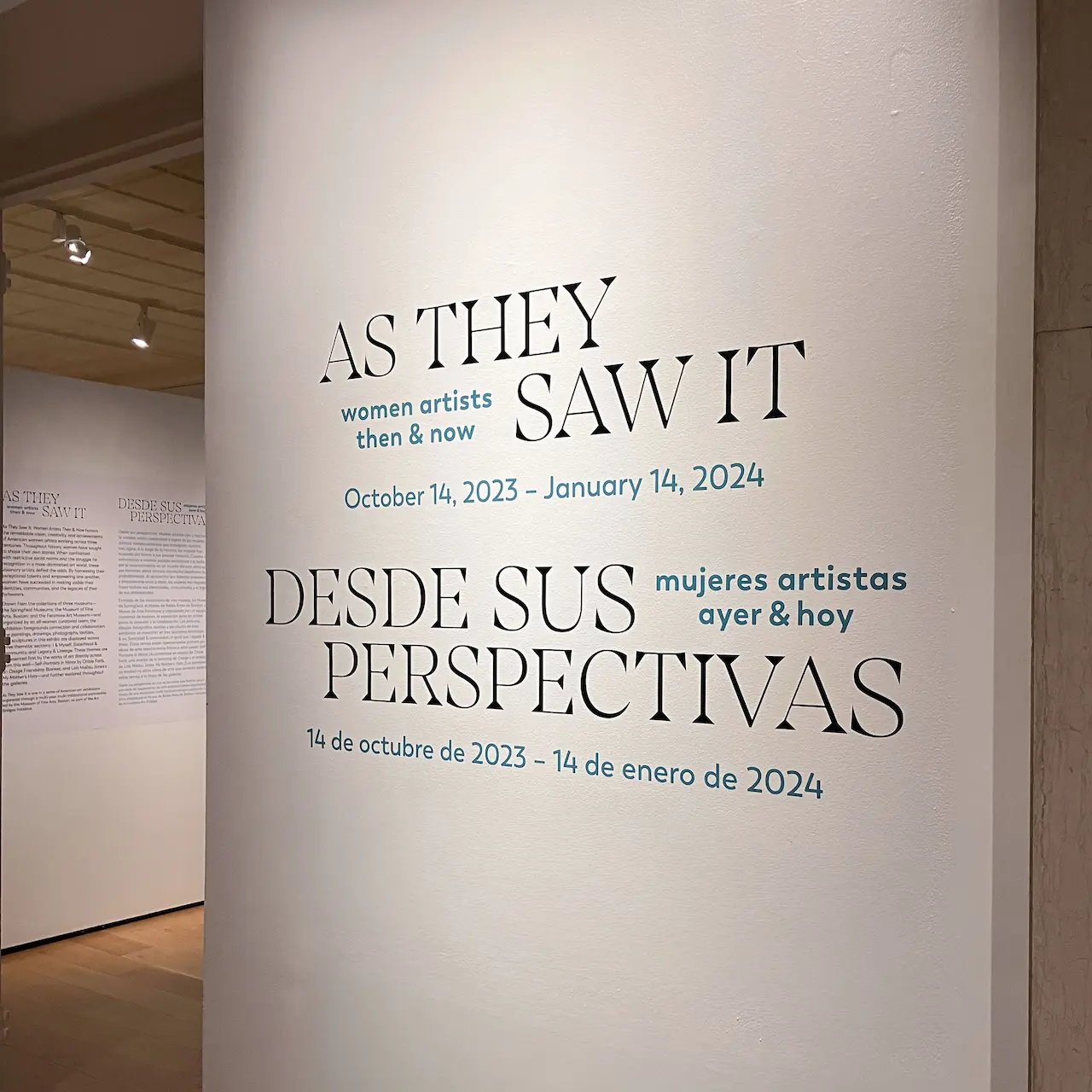 At the Michele and Donald D’Amour Museum of Fine Arts, bilingual presentation was essential. English and Spanish appear side by side at the same scale, with careful spacing and high contrast for clarity. The title wall establishes the exhibition’s tone as open, legible, and welcoming.