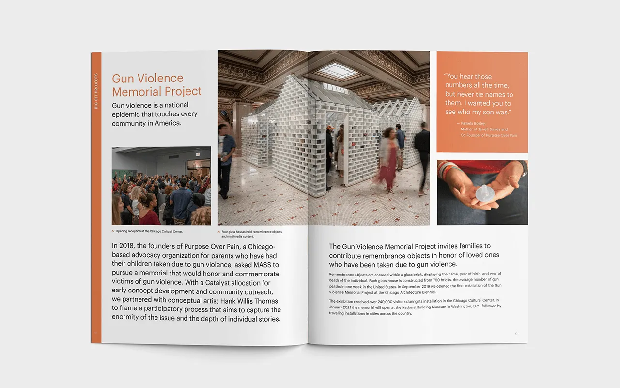When I arrived at MASS Design Group, the team was working with a logo, a preferred color, a preferred font, and some habits. In my tenure there, I codified the tendencies into an active and functioning design system. I defined the brand and disseminated it across our international teams through trainings and one-on-one consults. I developed a library of print assets and a process for making use of these custom designed templates for presentations, proposals, reports, and cutsheets.