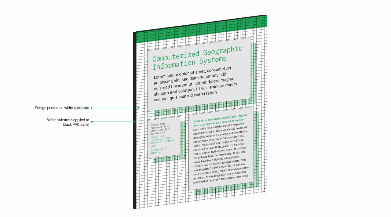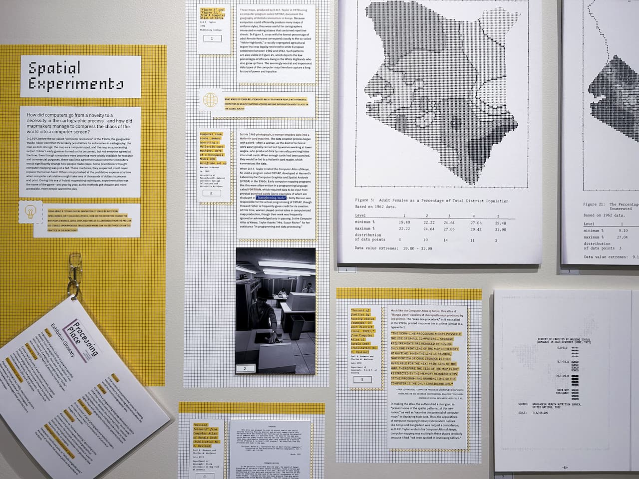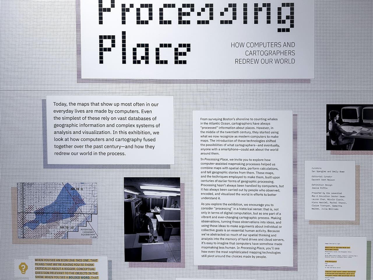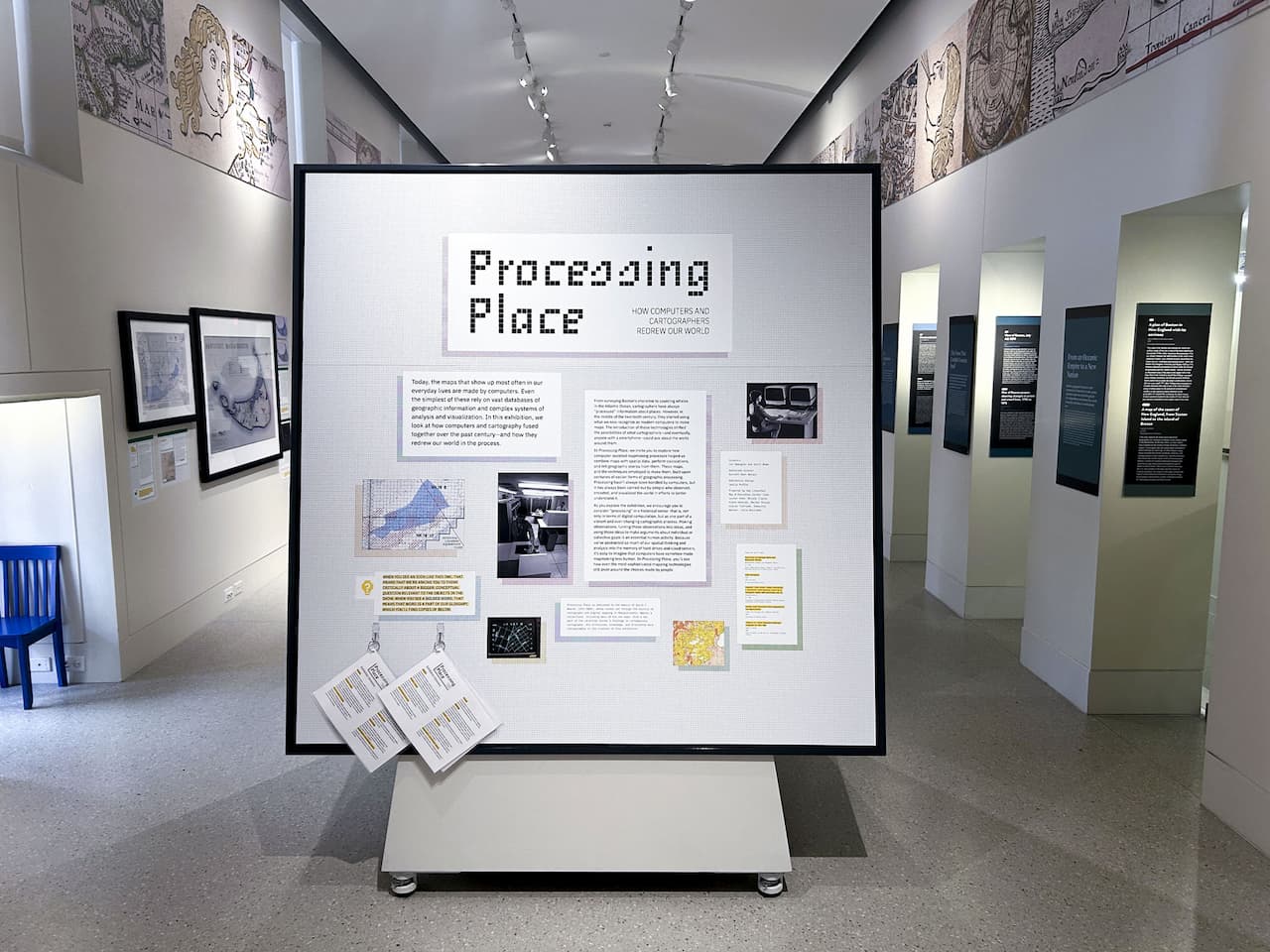 Design a flexible exhibition graphics system for Processing Place, exploring how computers and cartographers redrew our world. The project required a cohesive visual identity across diverse objects and dense content, balancing clarity, hierarchy, and approachability.